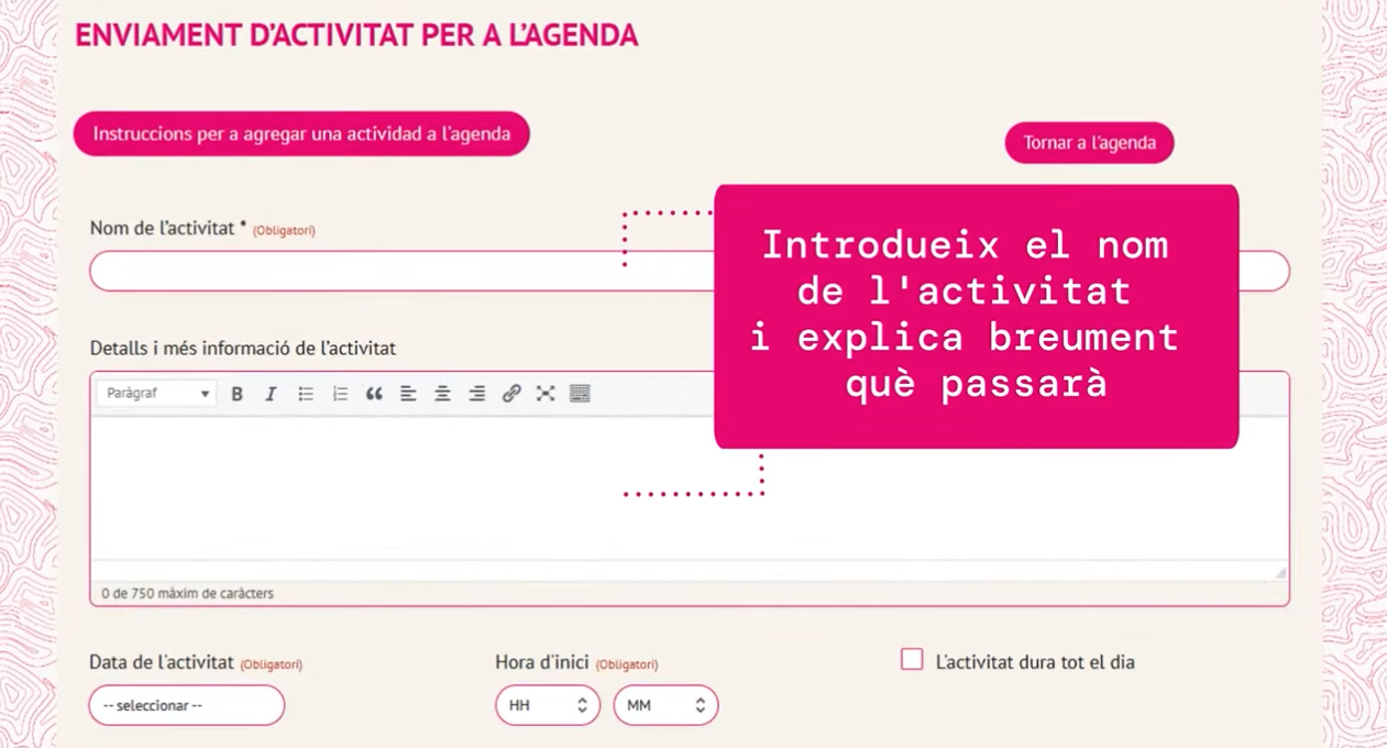 Per facilitar-ho, hem preparat un video-guia per explicar com pujar un esdeveniment en pocs minuts.